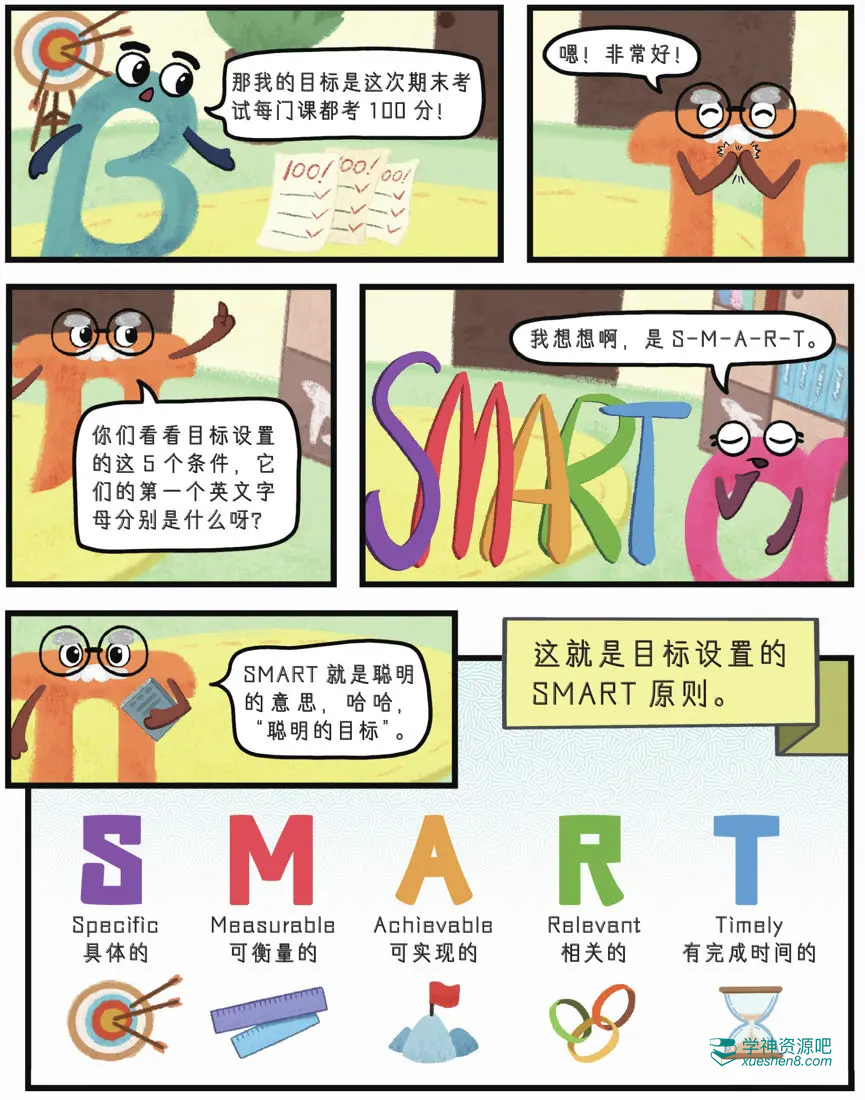 那么,在这本书里的第一章,作者就讲到了很多的学习方法,第一个就是要设置我们的学习目标。这个目标的设定原则就是SMART原则。