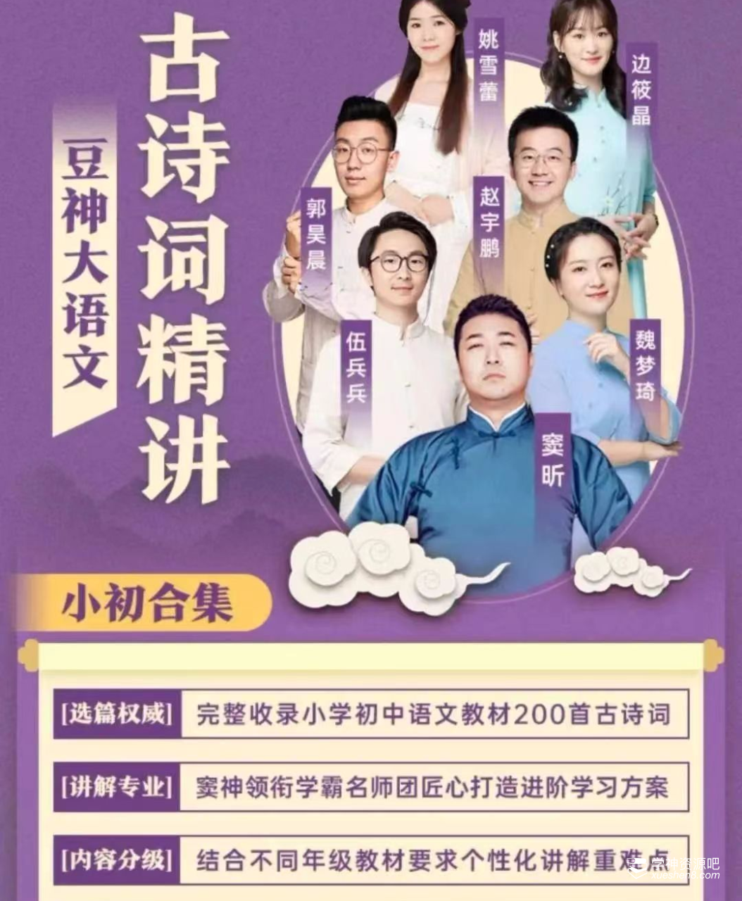 《窦神大语文名师团~~统编版古诗词精讲》由窦神领衔主讲,豆神大语文学霸名师团主讲,400期课程,给中小学生的古诗词分级学习系统化讲解。针对最新统编版语文教材!给中小学生的古诗词分级学习!)适合1-9年级!不管是平时学习还是假期的预习复习都是很好的资料。