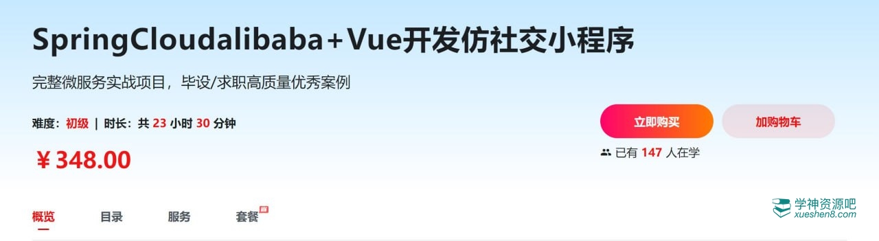 拥有好的项目经验,可以大大提高你的面试通过率。课程是一门高质量、完整、实用性强的可商用项目,基于Spring cloud alibaba和微信小程序来完成同城交友小程序,系统UI设计、数据库多应用方案、通用中间件使用、构建oauth2认证授权等多使用技术,课程不仅能掌握技术层面,还具备更好的业务水平,也能顺利地通过面试关。