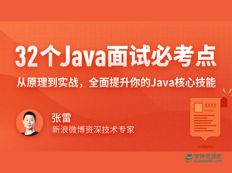 本课程基于拉勾 40W+ 技术岗位大数据,结合微博资深架构师张雷对 600+ Java 技术人才的面试和新浪微博技术评审官的评审经验,为你总结 Java 面试的 32 个常用考察点,帮你对 Java 知识体系进行全盘梳理。