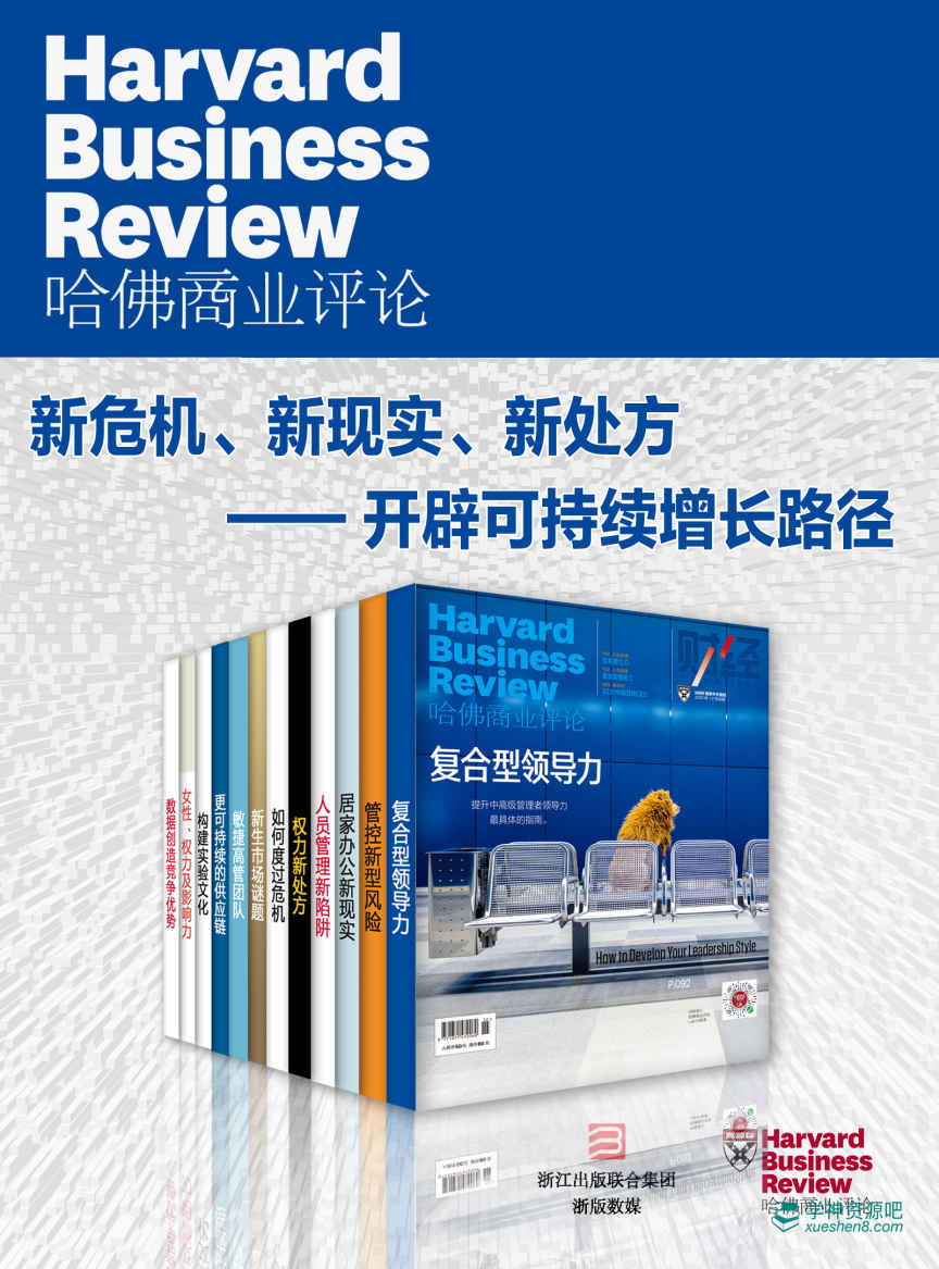 套装包含《数据创造竞争优势》、《女性、权力及影响力》、《构建实验文化》、《更可持续的供应链》、《敏捷高管团队》、《新生市场谜题》、《如何度过危机》、《权力新处方》、《人员管理新陷阱》、《居家办公新现实》、《管控新型风险》、《复合型领导力》12册。