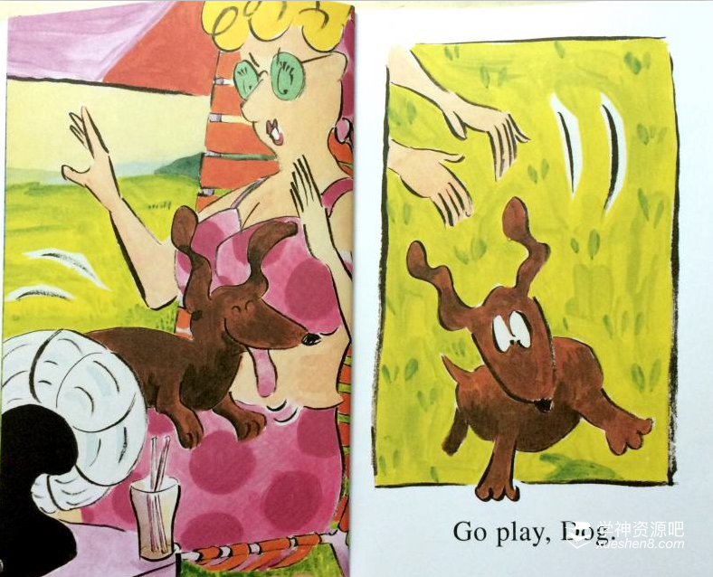学语言是模仿 重复的过程。step1 很多册都是运用语言重复的方法,单词押韵,节奏韵律感很强。例如《Hot dog》这本: