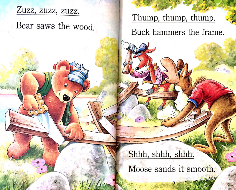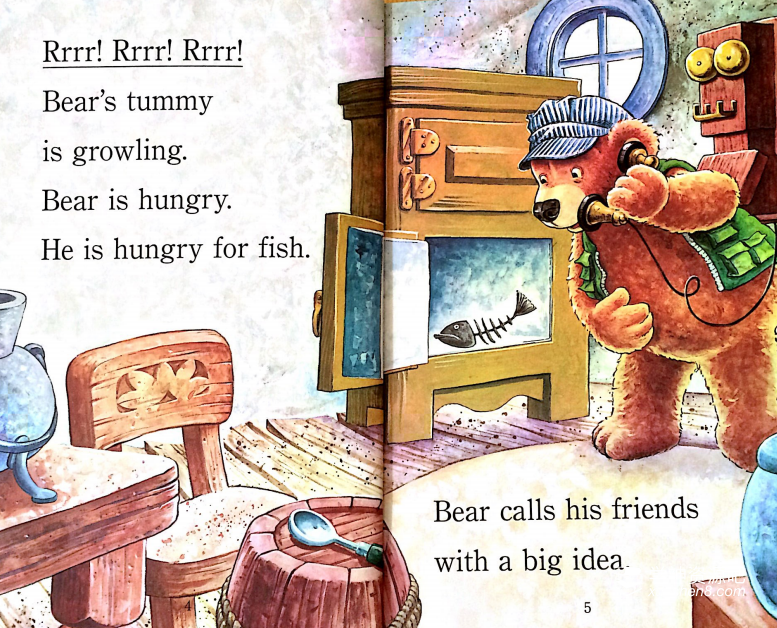 例如《Bear's Big Ideas》讲述一只大熊遇到问题能积极思考想办法,和好朋友分工合作,最后钓到了很多鱼,为冬眠做准备的故事。