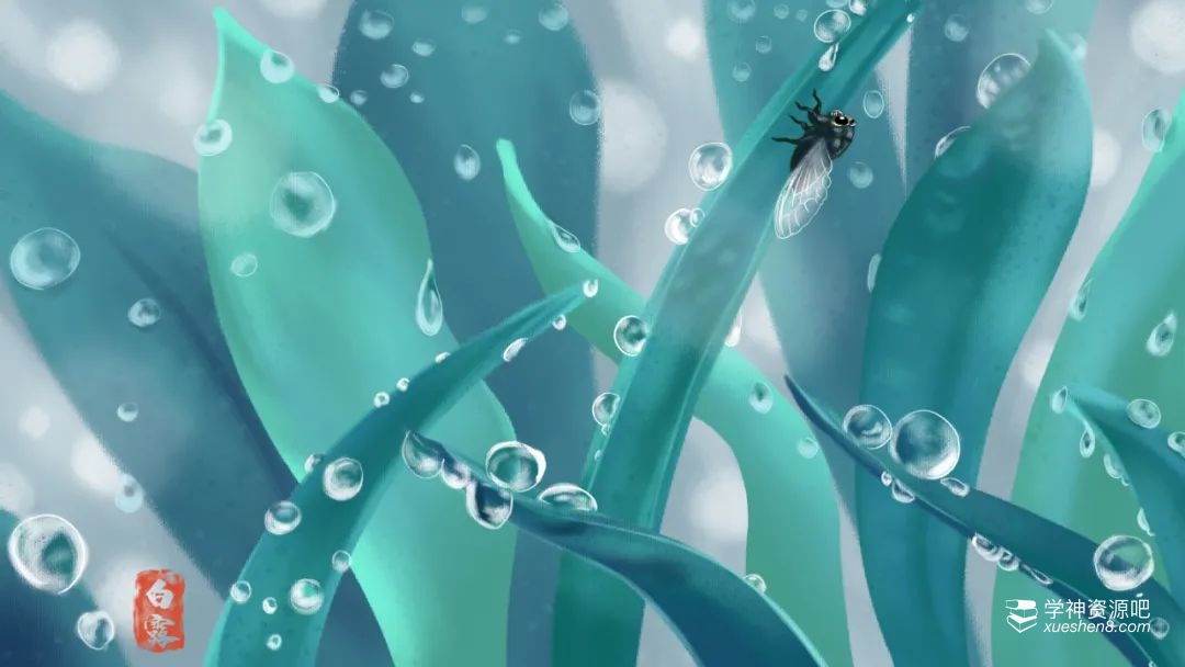 8、在池塘的深处,水甲虫在活泼地跳跃着,它的前翅的尖端带着一个气泡,这个气泡是帮助它呼吸用的。它的胸下有一片胸翼,在阳光下闪闪发光,像佩带在一个威武的大将军胸前的一块闪着银光的胸甲。在水面上,我们可以看到一堆闪着亮光的“蚌蛛”在打着转,欢快地扭动着,不对,那不是“蚌蛛”,其实那是豉虫们在开舞会呢!离这儿不远的地方,有一队池鳐正在向这边游来,它们那傍击式的泳姿,就像裁缝手中的缝针那样迅速而有力。