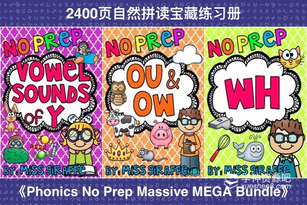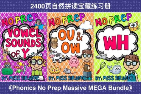 今天给大家分享一套超系统超全面的自然拼读练习册,外网售价106美金,由MISS GIRAFFE编辑的《Phonics No Prep Massive MEGA Bundle》练习册,据说是目前为止最贵的一套自然拼读练习册,共28册2400页。