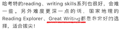 今天要分享的《Great Writing》超级强大,被鸡血圈评价为“简直造福中国学生,单是刷完F阶段,保证在小学阶段所有大大小小的英语考试阅读写作直接满分过!”