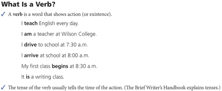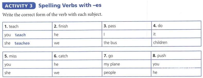 比如三单元是关于一般现在时的句子的写作。这单元的语法重点是关于动词的使用。首先从什么是动词开始,