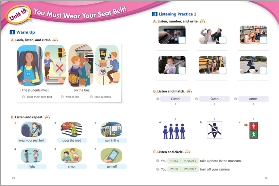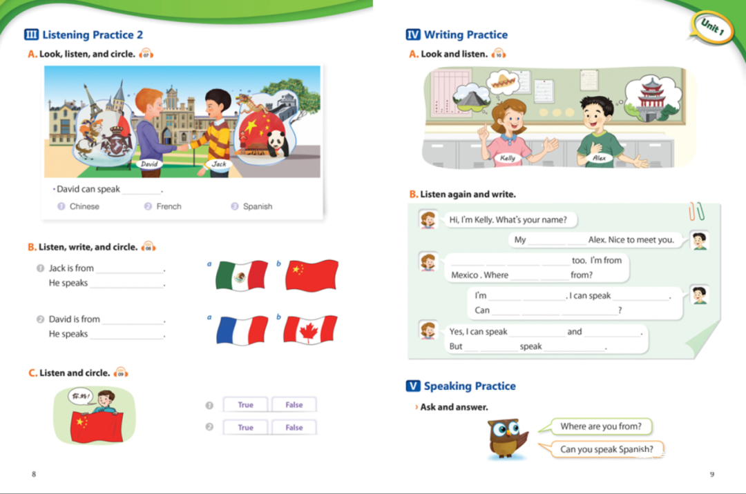 这套教材遵循先听后说的学习规律,通过环环紧扣的科学训练将词汇练习与句型练习完美结合,让孩子感受纯英文的学习环境和生活场景;通过多样的题型设置,如填写字母、听词圈词、不全句子,看图写话等多样的练习形式迅速提升听力技能!