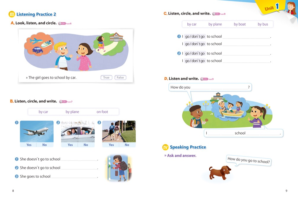 这套教材每个阶段又分3册,遵循先听后说的学习规律,通过环环紧扣的科学训练将词汇练习与句型练习完美结合,让孩子感受纯英文的学习环境和生活场景,通过多样的题型设置,如填写字母、听词圈词、不全句子,看图写话等多样的练习形式迅速提升听力技能。每阶段资料含学生用书、练习册、配套音频等。