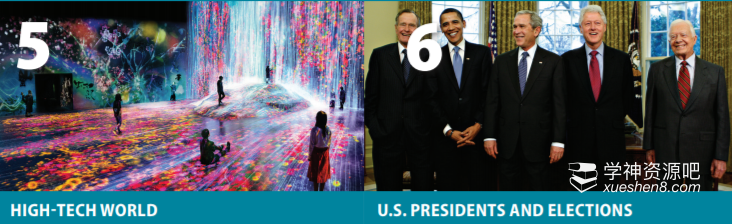 Grammar in Context 充分利用精美的国家地理图片,引入每个单元的话题,通过艺术、科学、文学、哲学等相关问题展开该单元内容, 让学生在学习语言的同时拓展知识面。