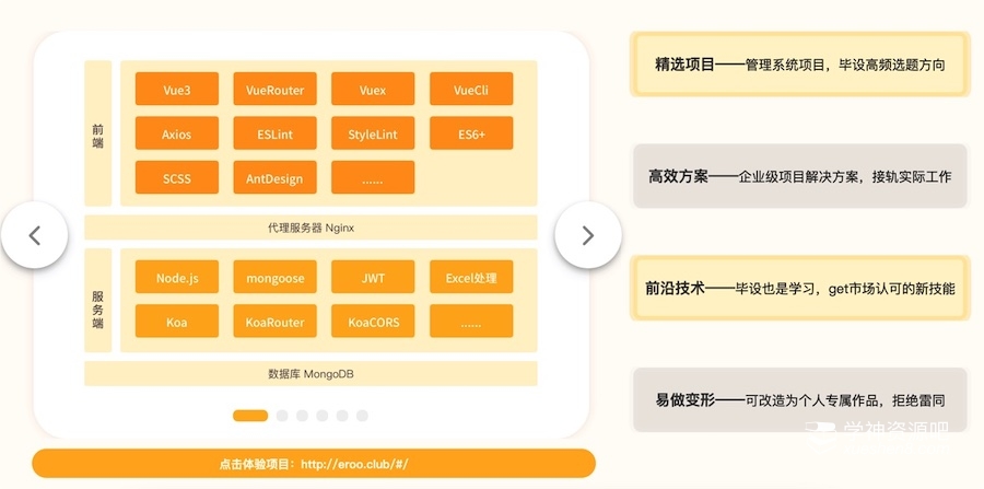 专为毕业生打造,助你高效、高质量完成毕设作品,解决毕业头等大事。课程全面梳理毕设流程,并精准定位每个环节的重点难点、完成技巧,扫清毕设难题。采用主流、企业级技术栈,祝你完成毕设,直面校招。
