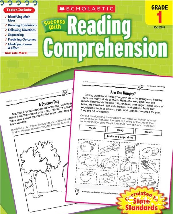 Scholastic Success with Reading Comprehension《学乐英语阅读练习册》,这套共5册(1-5年级)。内容包含方方面面,生活常识、社会常识、自然、科普、游戏、文学。让孩子通过阅读获取信息,学习积极的价值观,孩子会自然而然地崇尚友好、勇敢、正义,并慢慢将其实践到自己的生活中。这套练习册不仅仅是一套习题,更是一套包含许多趣味故事的书。