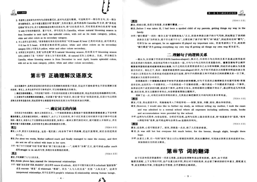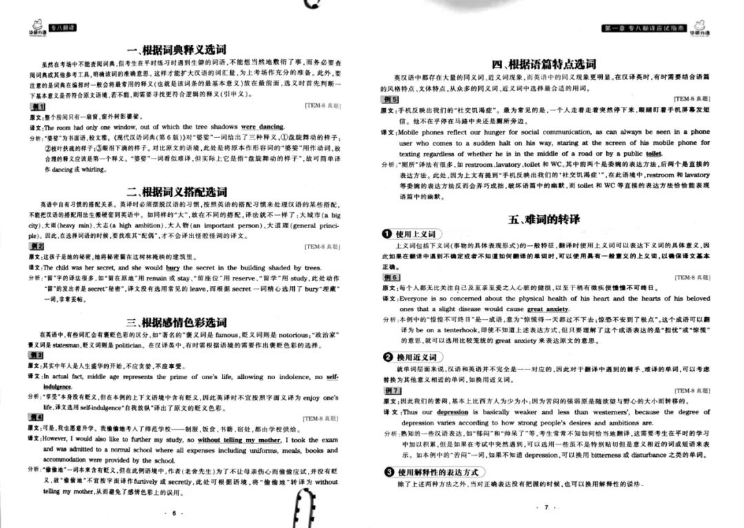 4.专八翻译技巧详实,杜绝空洞理论,帮助考生攻克汉译英选词和句式难点;