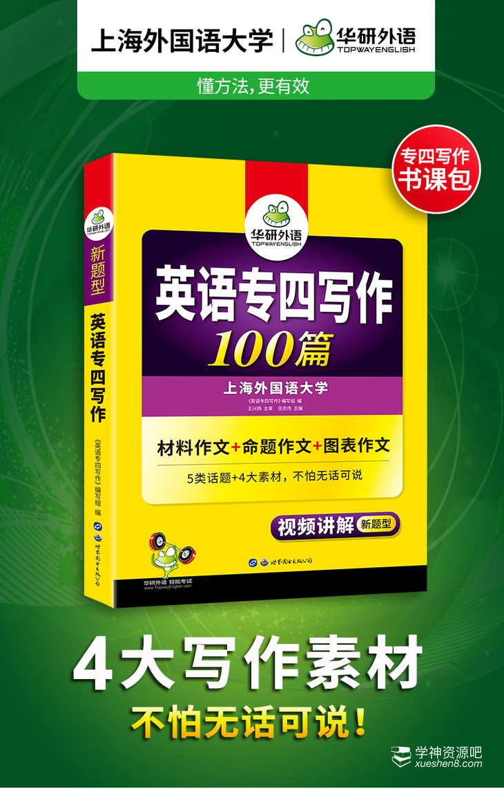 3.英语专四写作话题全面,包含材料作文、命题作文、图表作文三大题型,容易命中考题;