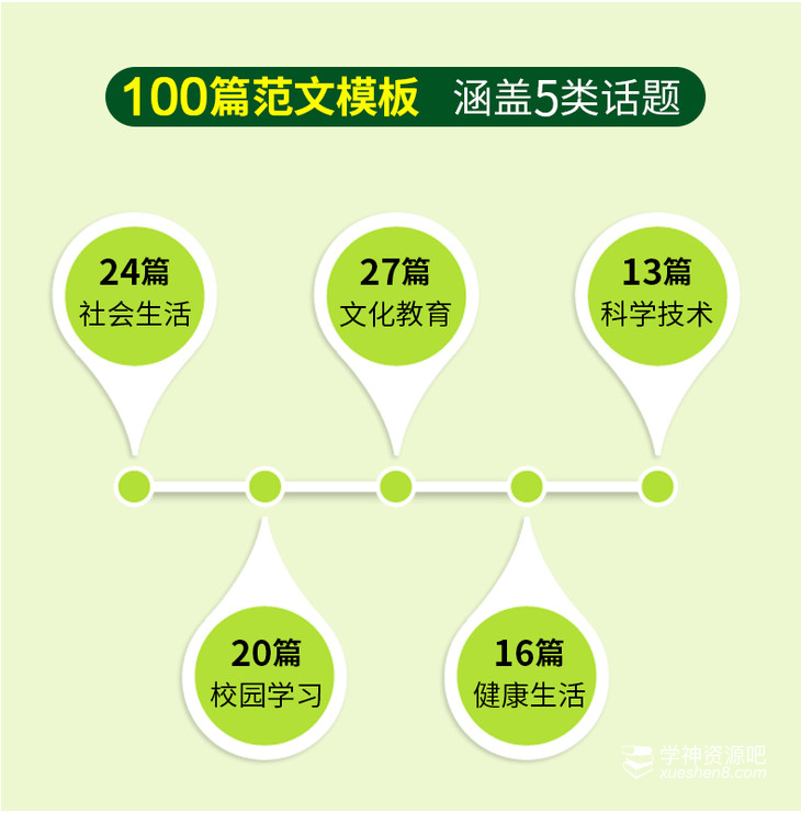 2.提供英语专四写作精品范文100篇,全面覆盖5类作文话题;