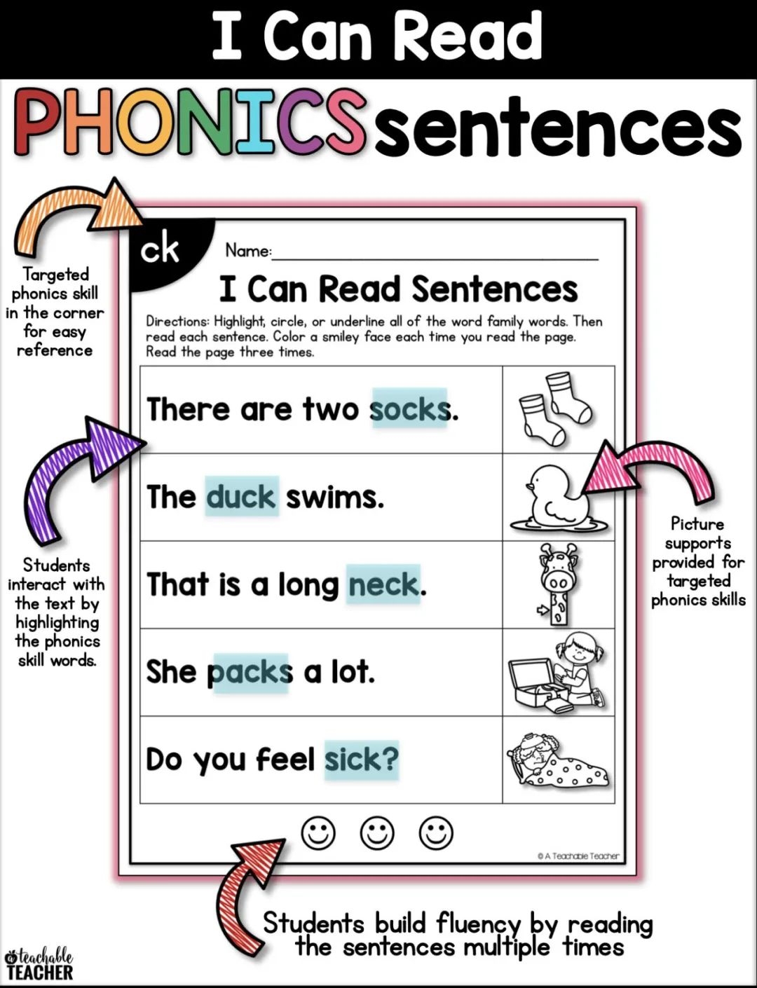 最后的红色箭头指向页面下方的笑脸,是为了方便记录孩子是否流利读出句子,以及读了几次。