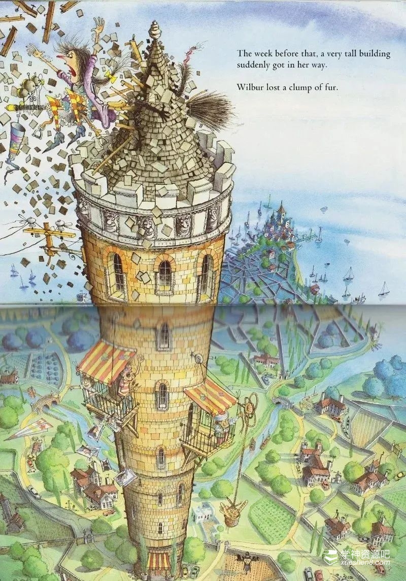 Winnie the Witch 系列是Korky Paul 最有影响力的代表作,配图的画风非常鲜明、缤纷,特别是细节描绘得相当仔细,尤其画起建筑时更可见绘者的手绘功夫之高。这样的例子,在书中很多很多。