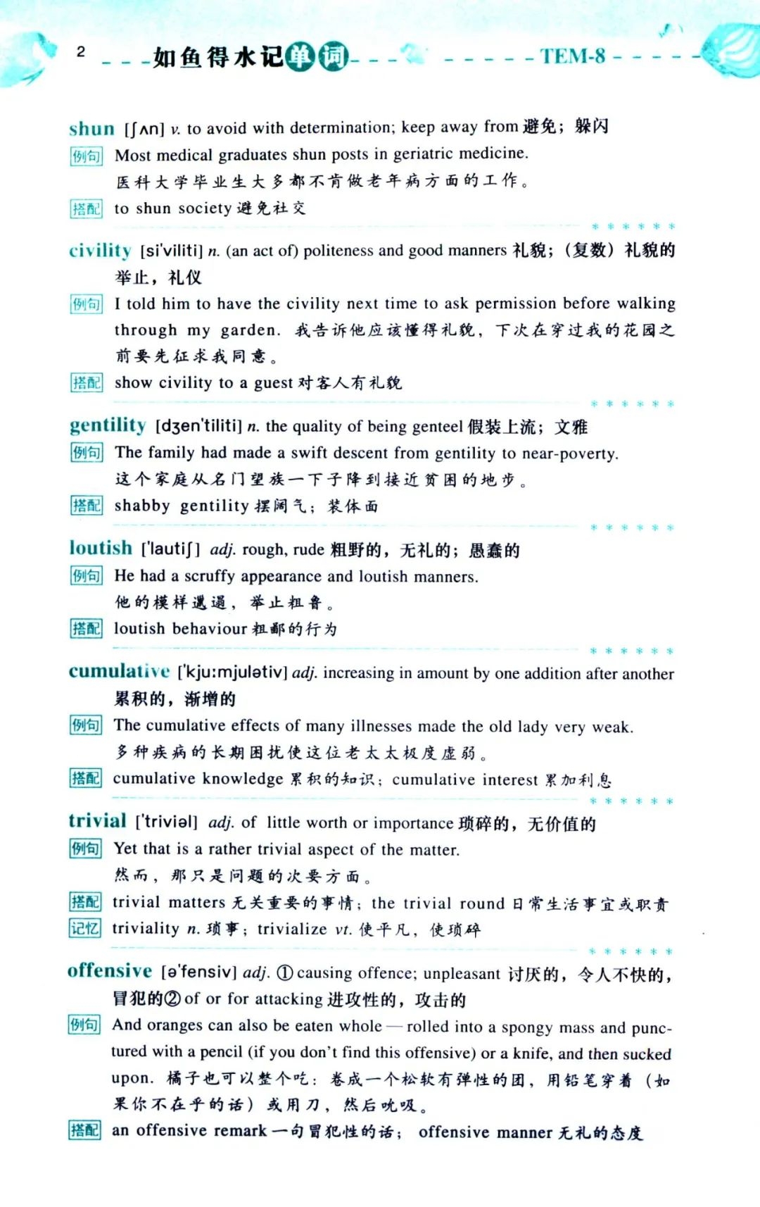 √自用专八备考单词书,语境加深单词记忆方式对我很适用,极大扩大我的词汇量。大家若想看英语专八通过经验贴,可关注灿若星辰Caitlin微信公众号查看推文。