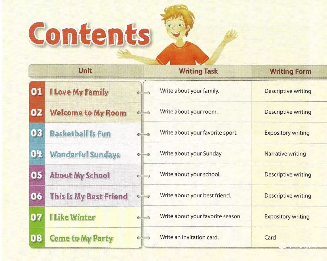 今天分享一套经典的中小学生创意写作训练美国原版教材——Write Right系列,一步一步引导教会孩子如何系统地学习英语写作。每套教材以8个不同的主题为例子,教孩子写好身边的事。从1级到3级,主题难度逐渐加深,循序渐进。