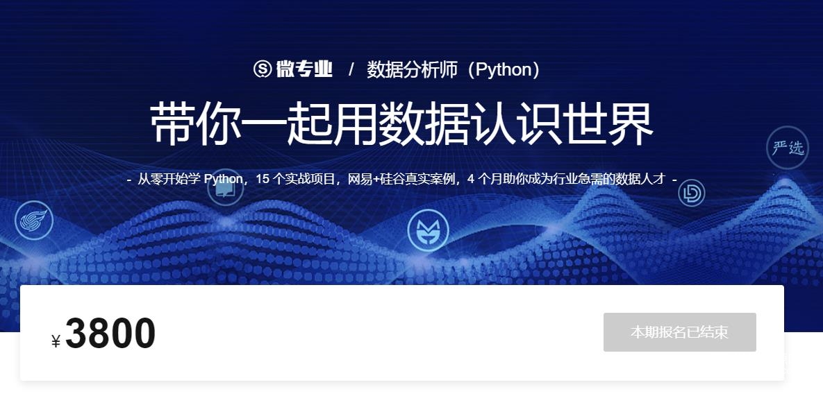 【数据分析师(Python)】微专业,城市数据团和网易课程团队将共同带领大家,在最短时间内掌握最核心的Python数据分析技能,完成15个实战项目,梳理网易和数据团的实战案例,陪伴大家成为一名优秀的数据分析师!