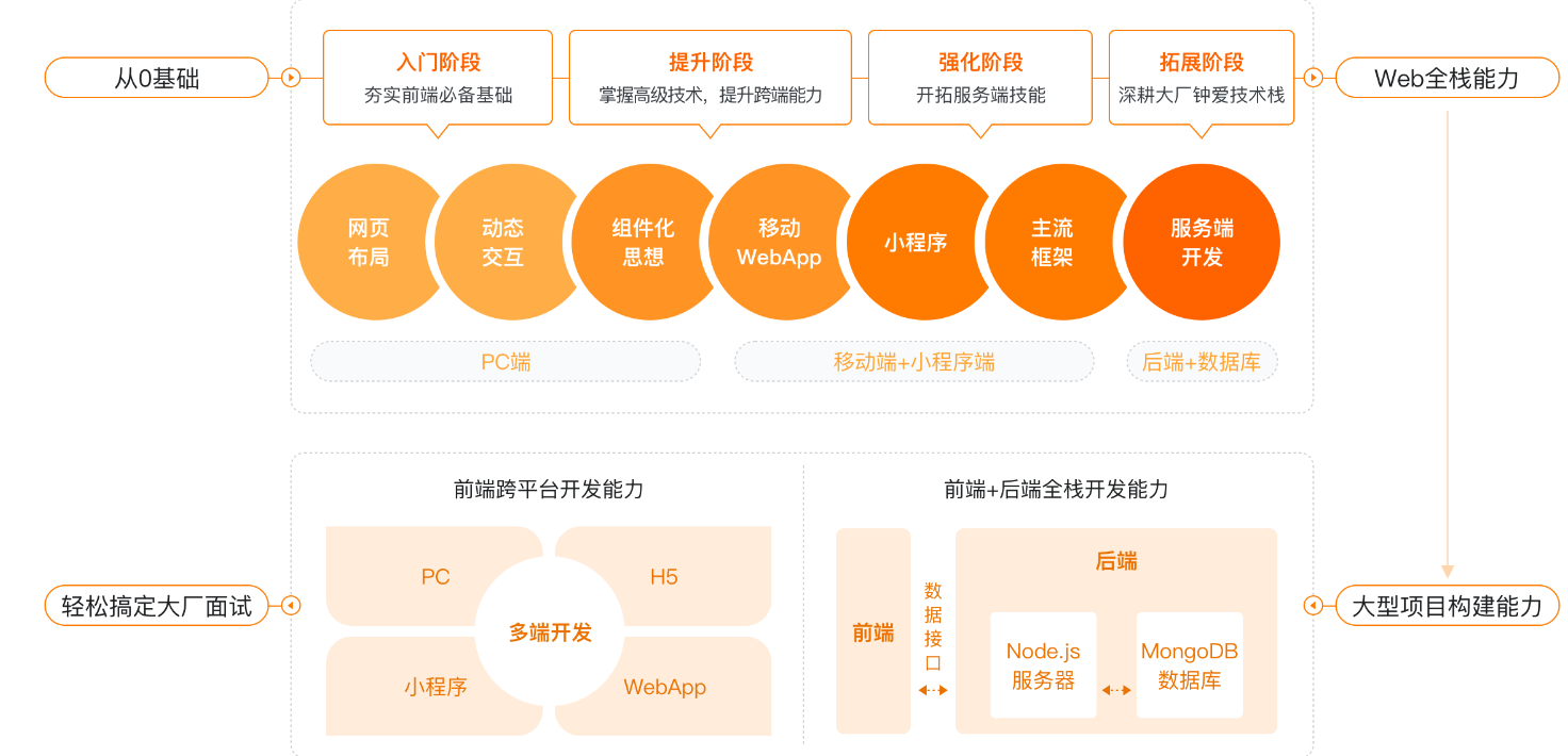 4大阶段,7个步骤,多端 全栈,直达大厂Offer
