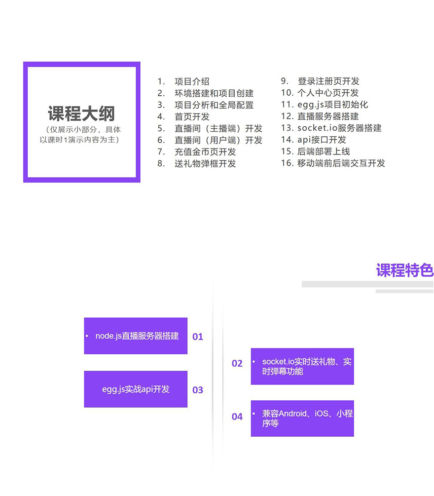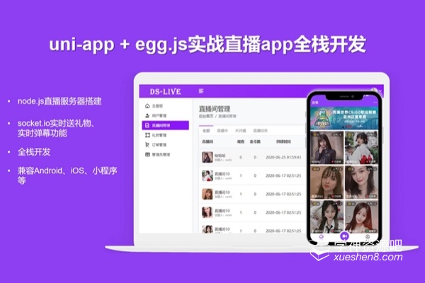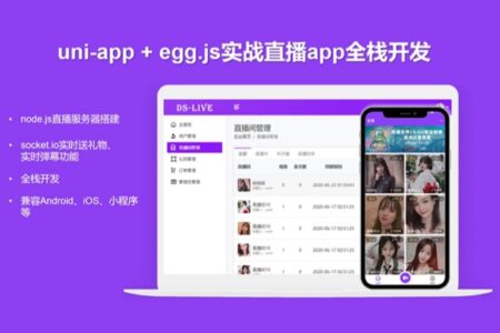 本课程为uni-app egg.js 实战直播app、小程序全栈开发,课程涉及:node.js直播服务器搭建,socket.io实时送礼物、实时弹幕功能等。一次开发,同时搞定Android、iOS、小程序端。