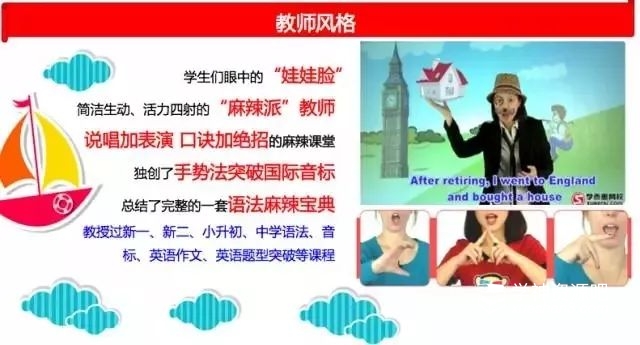 老师的英语课堂提倡轻松易懂,节奏明快,独家自编的宝典让你轻松掌握语法必会知识点,让你爱上语法!爱上英语!
