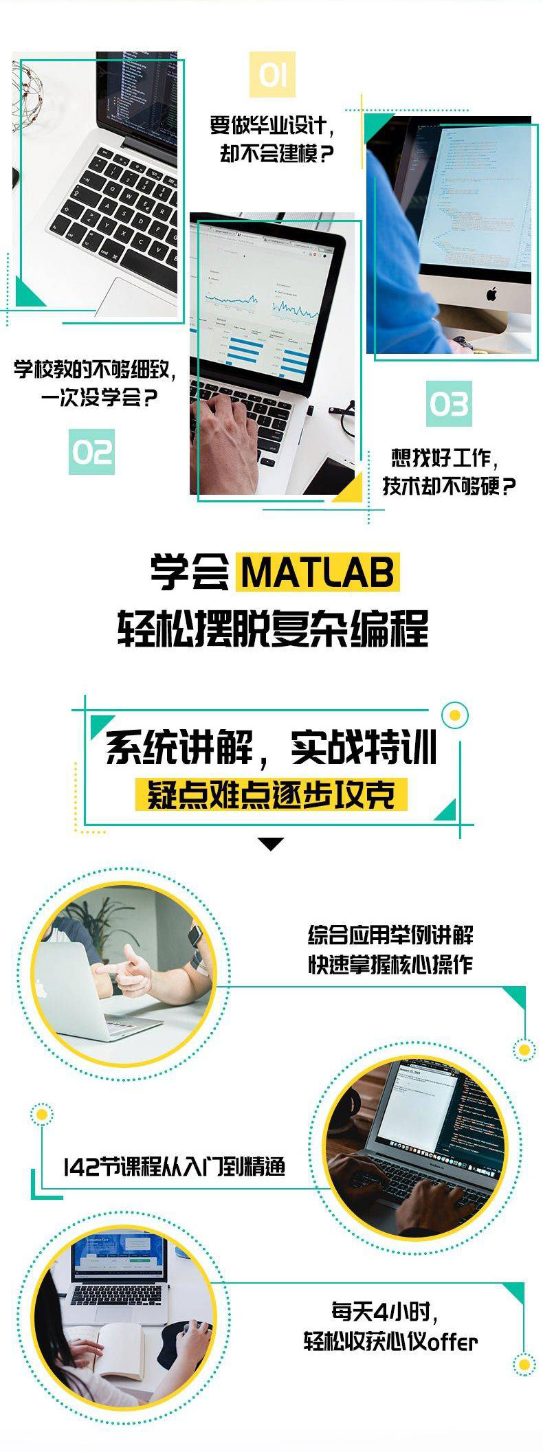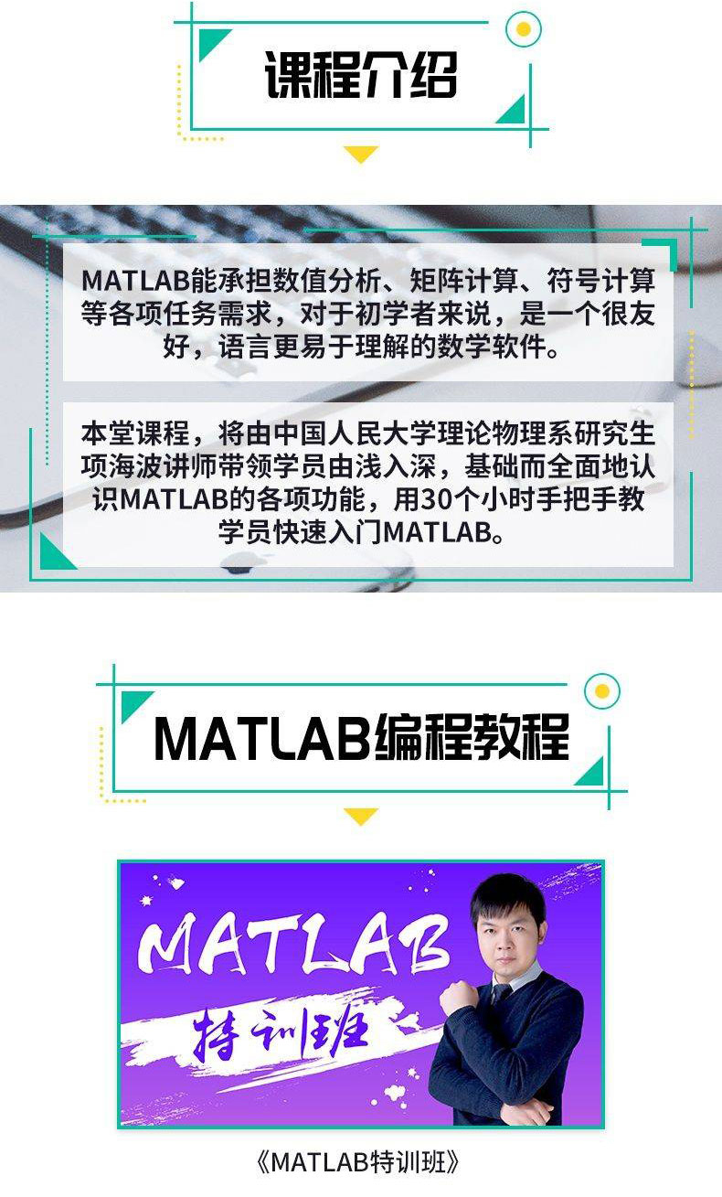 您将获得掌握MATLAB基础知识、图形进阶、代数方程等知识点通过系统特训,掌握MATLAB必备的基础操作和使用技巧
