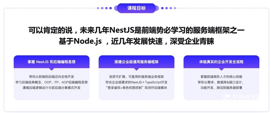 NestJS 在构建高效且可扩展的 Node.js 服务器端应用程序方面别具优势,越来越多的团队在大型 Node.js 服务端项目中使用 NestJS,非常值得前端学习。本课程是站内首门讲解 NestJS 的实战课,你将在 Brian 老师的带领下,顺滑地进入服务端开发领域,并掌握 NestJS 这项目技术的高效使用方法。