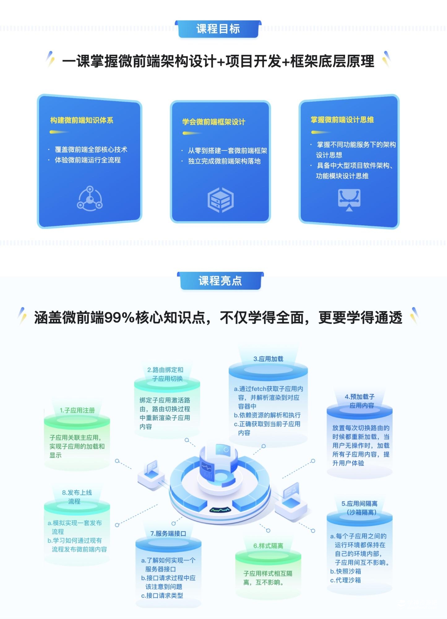 为什么要学微前端架构?当你的项目越来越复杂,工程越来越大,代码冲突越来越频繁,打包越来越慢的时候,就该好好学习下微前端架构了。本课程将带你从零打造一个微前端框架,并实战一个汽车资讯平台,让你系统掌握微前端架构设计与落地能力,轻松解构巨型应用。