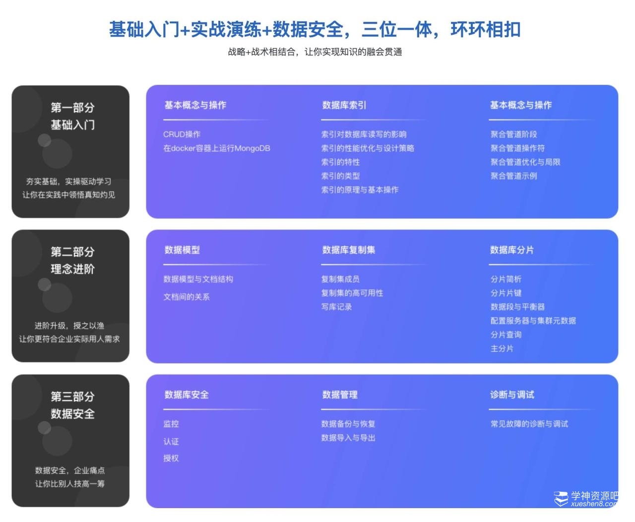 还在为不知如何快速高效地入门MongoDB数据库而纠结和烦恼吗?不要再浪费时间了,本节导学告诉你,玩转MongoDB实战课程为你设计的学习路线,如何带领你事半功倍地掌握深受业界欢迎的MongoDB数据库知识。