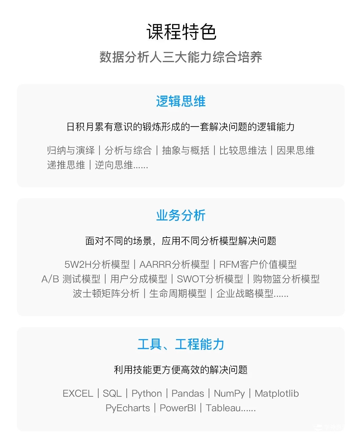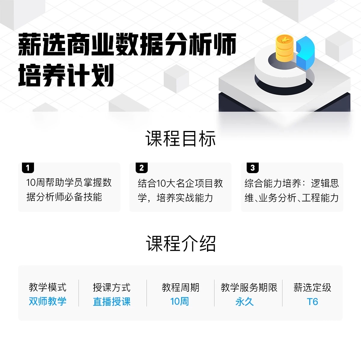 贪心学院10周成为数据分析师系列课完结无密版,本课从基础知识开始,系统讲解数据分析核心知识和方法论,全面疏理数据分析核心技能,一站式掌握Python、SQL、 PowerBI等主流数据分析工具,构建数据分析思维,掌握职业数据分析师的必备技能,结合10大名企项目,10周高效掌握数据精英必备技能,构建专属数据分析方法,全方位构建数据分析能力,助力职业晋升。