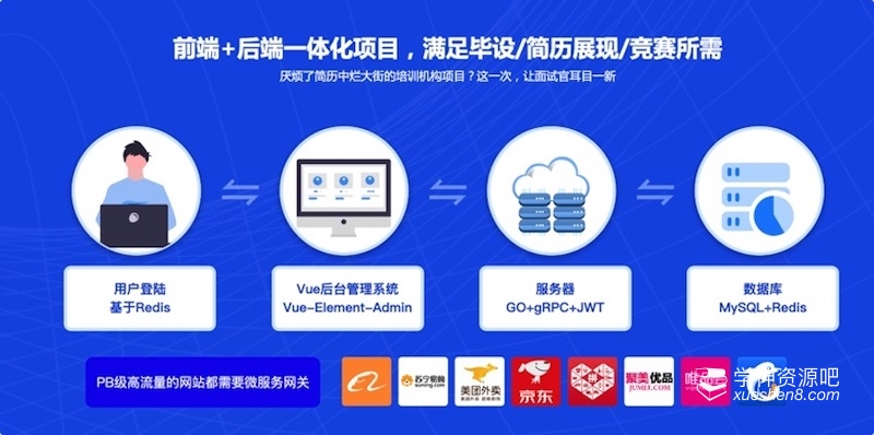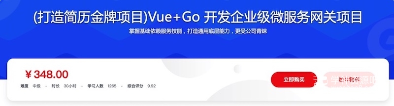 你是否遇到这样问题?投递很多简历,总是石沉大海大海,杳无音信?经过分析很多小伙伴的简历,大多采用了培训机构烂大街项目作为项目经验,导致无缘面试邀约。本课程就为你解决这个燃眉之急。同时,Vue很火,Vue+Go的结合早日学成,早日挑大梁!...