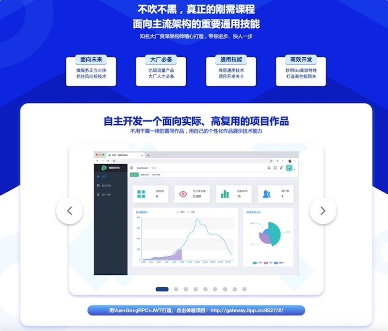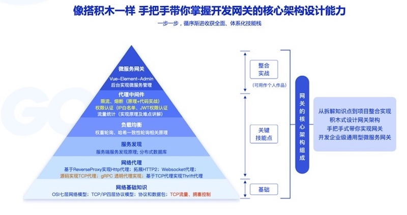 本课程带你手把手设计并实现一个通用型前端+后端一体的微服务网关项目,同时利用Go语言本身的性能优势,打造网关的优越性能,提升自身硬实力,还能收获微服务网关项目作品,丰富个人简历。