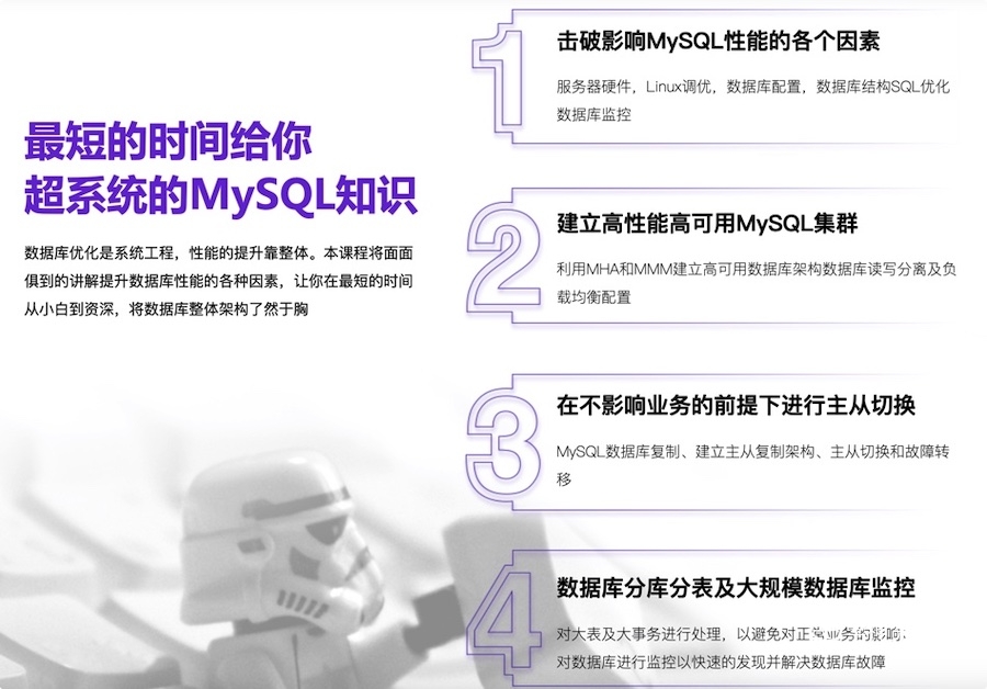 数据库优化是系统工程,性能的提升靠整体。本课程将面面俱到的讲解提升数据库性能的各种因素,让你在最短的时间从小白到资深,将数据库整体架构了然于胸