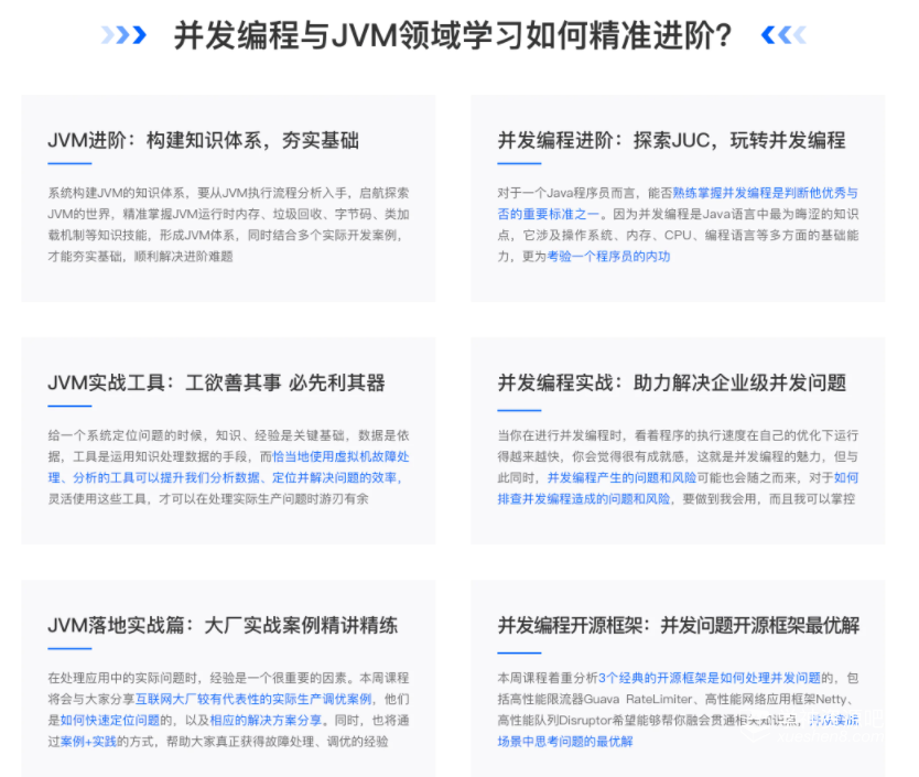 系统构建JVM的知识体系,要从JVM执行流程分析入手,启航探索JVM的世界,精准掌握JVM运行时内存、垃圾回收、字节码、类加载机制等知识技能,形成JVM体系,同时结合多个实际开发案例,才能夯实基础,顺利解决进阶难题对于一个Java程序员而言,能否熟练掌握并发编程是判断他优秀与否的重要标准之一。因为并发编程是Java语言中最为晦涩的知识点,它涉及操作系统、内存、CPU、编程语言等多方面的基础能力,更为考验一个程序员的内功。给一个系统定位问题的时候,知识、经验是关键基础,数据是依据,工具是运用知识处理数据的手段,而恰当地使用虚拟机故障处理、分析的工具可以提升我们分析数据、定位并解决问题的效率,灵活使用这些工具,才可以在处理实际生产问题时游刃有余。