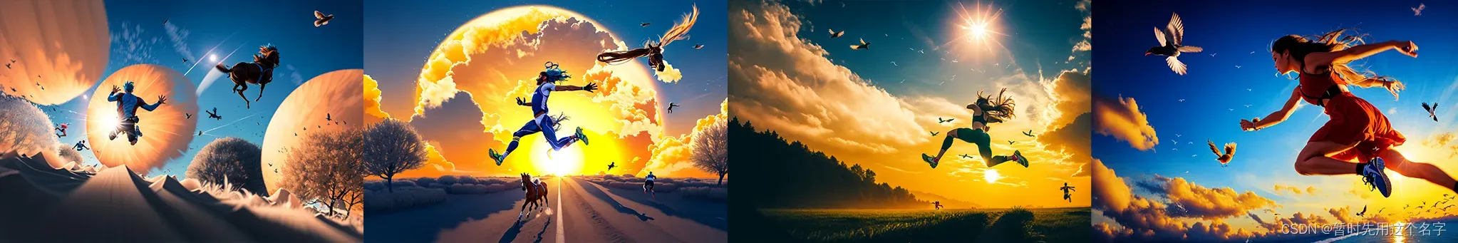 根据上面的提示出的图,各元素都出现了,但是并没有实现run这个关键词,除了第一张图左下角几个奔跑的人物外,第三张图更是人物都没有了。