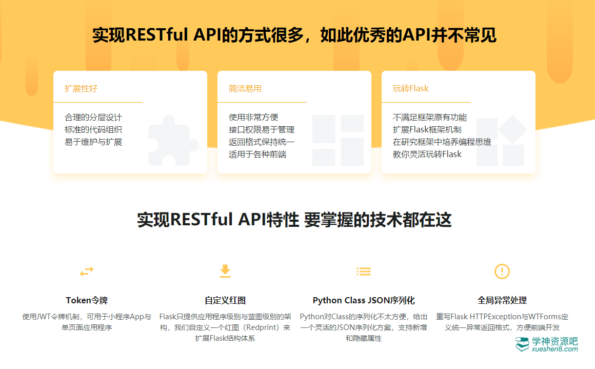 前后端分离大势所趋,本课程将构建一套优秀的RESTful API,可以适配小程序、App 、wap 、web前端页面。另外还扩展了Flask框架机制,培养编程思维,随心所欲玩转Flask。优秀完整的RESTful API框架,你也可以实现!