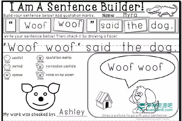 最后,孩子可以邀请爸爸妈妈检查成品或自测,签上检察员的大名,让孩子养成良好的书写习惯。