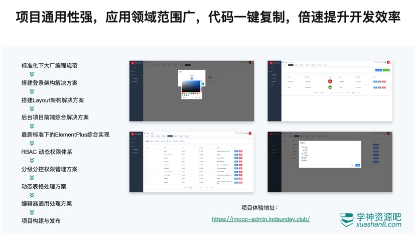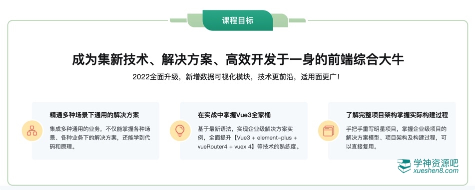 会编码的人有很多,能够提出解决方案的人少,想要高效开发,不仅要会编码,还要懂方案!本课程将基于Vue全新的 <script setup> 语法,手把手带你重写vue-element-admin,不仅能提升你策划方案的能力,更能解决场景众多、功能繁复的后台前端项目中的难题,助力你成为集技术、方案、高效开发于一身的综合性大牛!