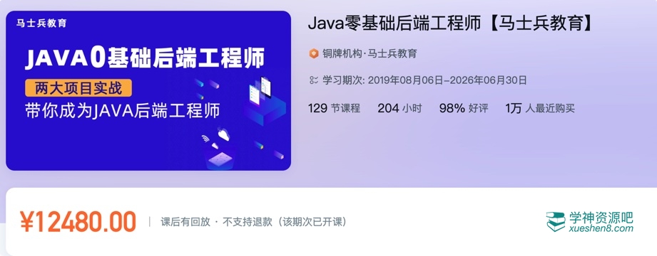 马士兵教育 – Java零基础后端工程师视频课程。本课是一套Java零基础入门到进阶的就业项目实战课程,包含JavaSE、JavaEE、数据库、Springmvc、mybatis、Java常用框架、后端面试等核心内容,并围绕企业级实战项目,进阶Java后端工程师,冲击互联网高薪岗。