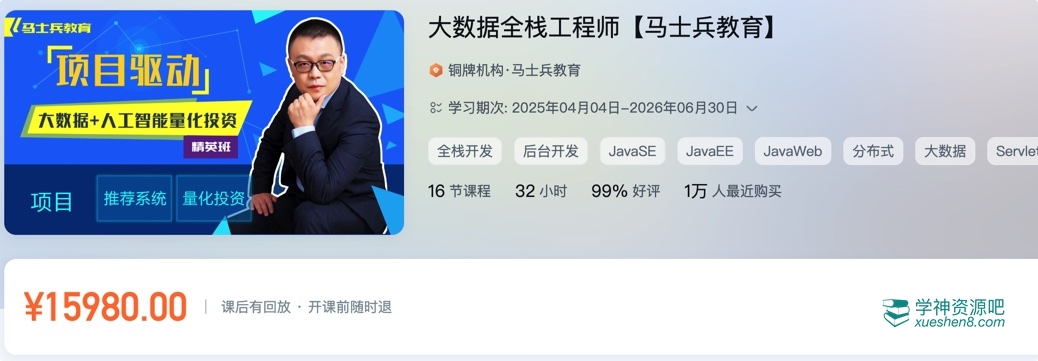 大数据+人工智能量化投资课程是一门适合小白入门的课程,通过量化投资项目作为驱动,让你精通各大互联网公司常用的技术,例如:Hadoop、HBase、Spark、Flink等技术,同时量化投资项目运用了机器学习和深度学习的各种算法,通过通俗简单的生活事例讲明白让大家望而却步的算法,全程绝不demo式的敷衍了事,各大项目完结,交通灯,数仓等