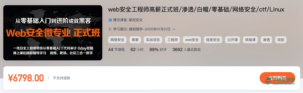 web安全工程师高薪正式班/渗透/白帽/零基础/网络安全/ctf/Linux