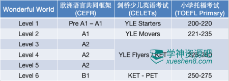 Wonderful World包含六个级别,对应小学1-6年级,完美对接剑桥少儿英语考试。