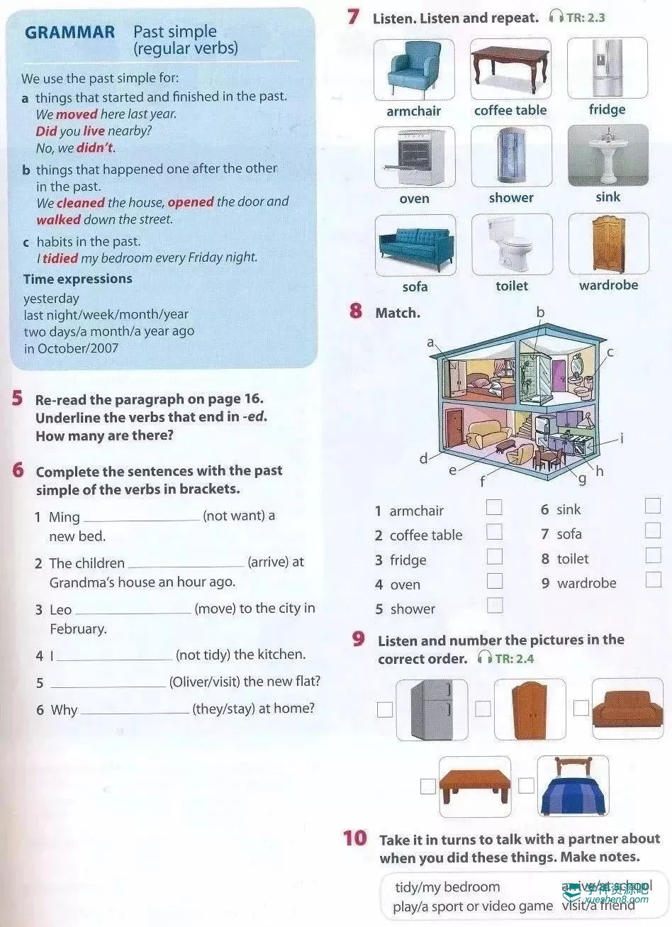比如,一般过去式怎么用,先枚举了三种情况,再强调过去时间的表达方法,孩子很容易掌握时态的语境!