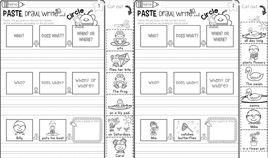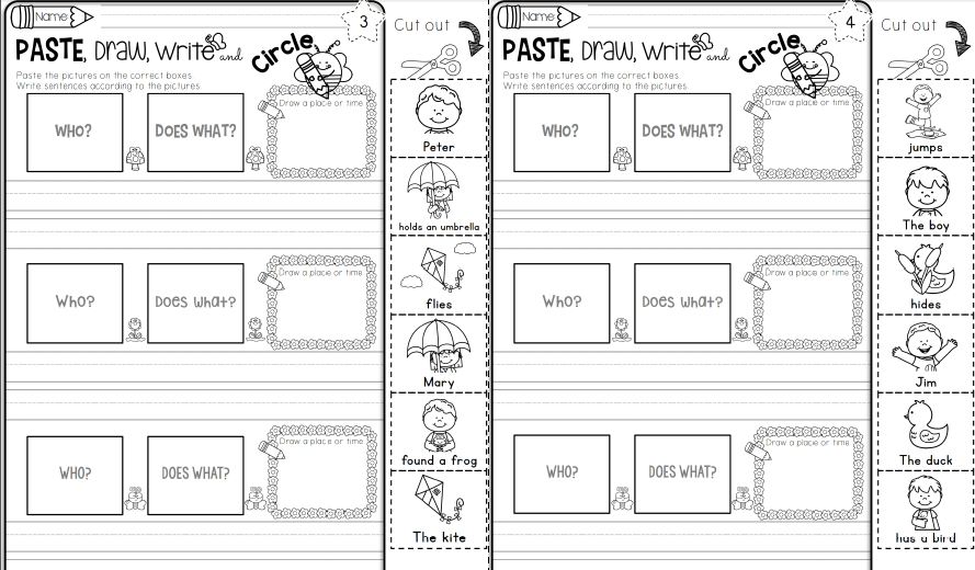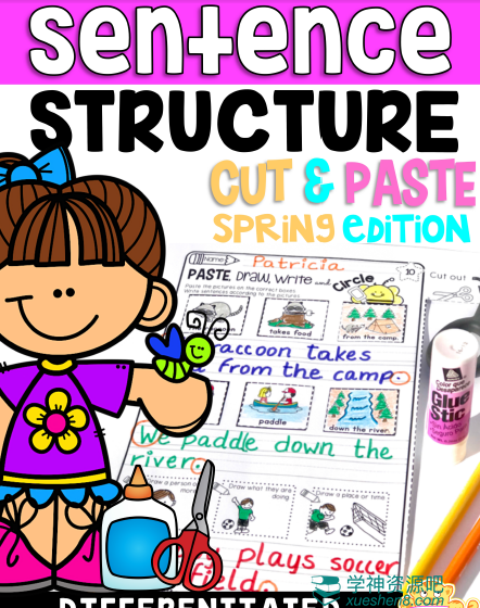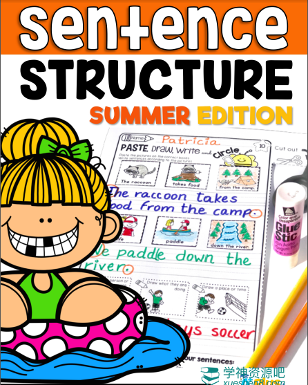 《How to Write Sentences Bundle》小学英文句型写作专项练习册,帮助孩子理解句子的结构,对于平时写不出英文句子的孩子针对性的去练习,这套练习右边配有可爱的配图,根据左边的提示来剪下图片贴到对应的方块内,并写下完整的句子~这样的训练会增加他们写作的多样性和兴趣,提高他们的创造力,并在继续阅读段落之前打下坚实的基础。