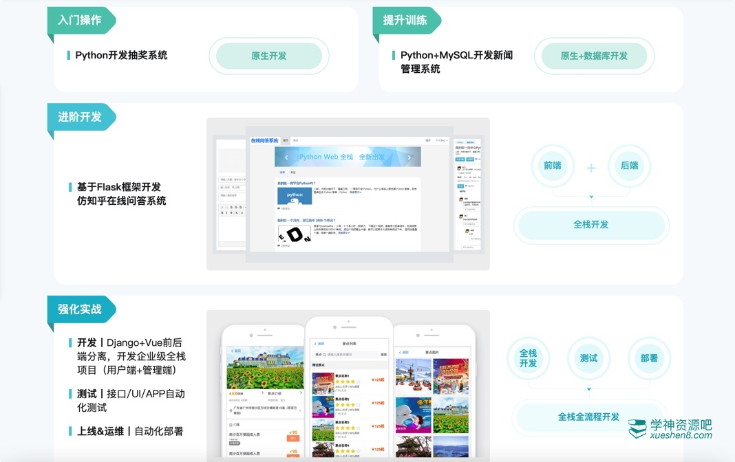 多样化知识点,培养拥有全局思维+全栈开发能力的Python工程师