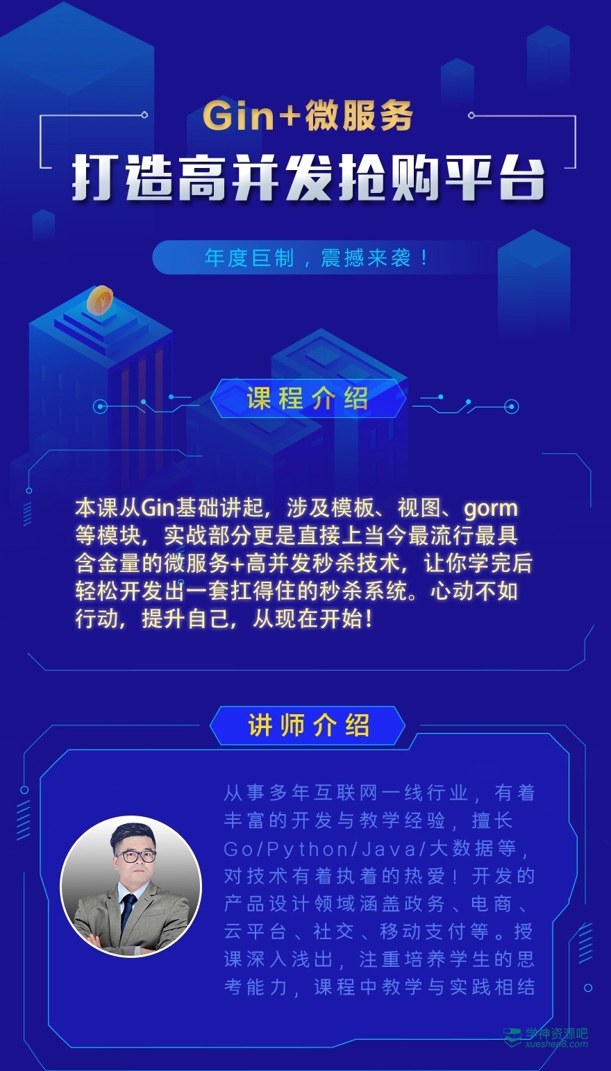 本课从Gin基础讲起,涉及模板渲染、中间件、数据绑定及验证、gorm等模块,实战部分更是直接上当今流行、具含金量的微服务+高并发秒杀技术,让你学完后轻松开发出一套扛得住的秒杀系统。心动不如行动,提升自己,从现在开始!