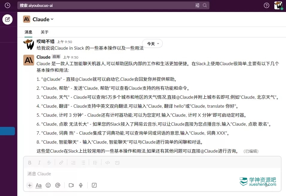 当 Claude 应用成功添加到你的 Slack 账号之后,就不再需要特殊线路了,在所有网络下都能直连使用,这一点还是挺方便的。