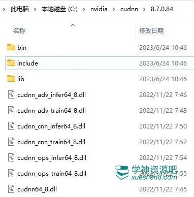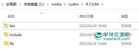 打开刚刚创建的cuDNN版本文件夹,即C:nvidia cudnn 8.7.0.84(根据你的选择进行命名)。